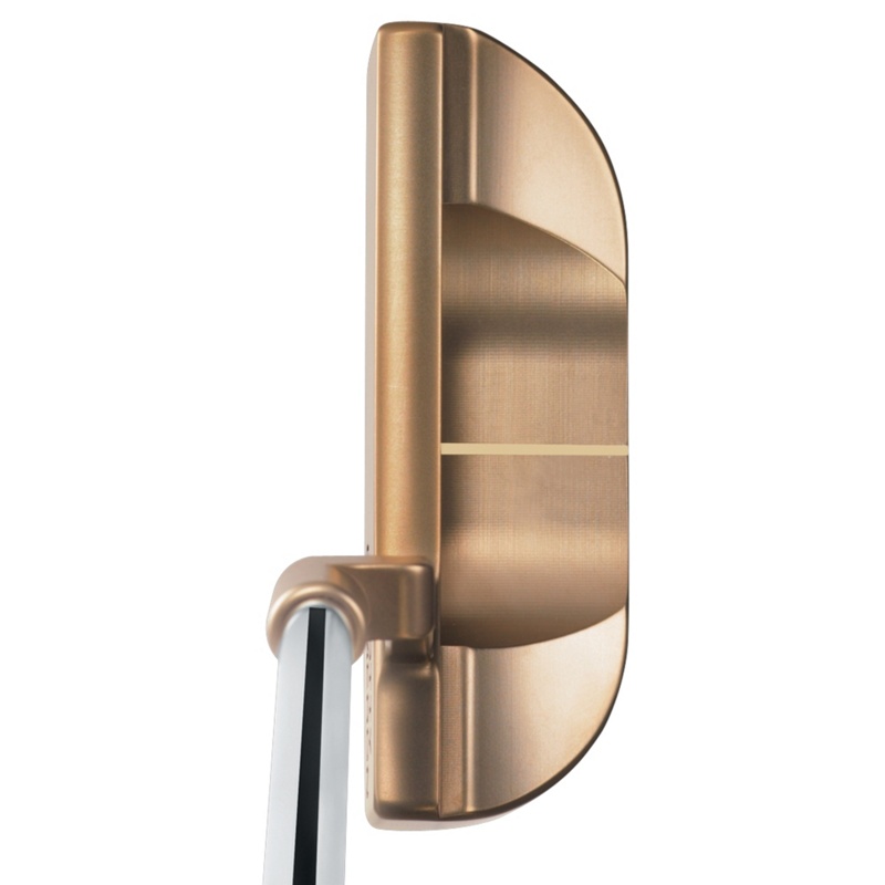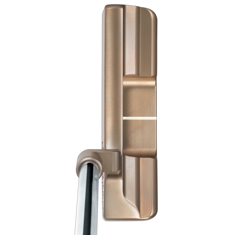 Aids alignment and eliminates the tendency to raise the toe at address causing a player to aim the putter to the left of the target.