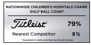 Titleist was the most played golf ball at the Nationwide Children's Hospitals for Children Championship with 79% of the field (108 players in the field of 137) trusting a Pro V1 or Pro V1x, nine times the nearest competitor with 9% (12 players).