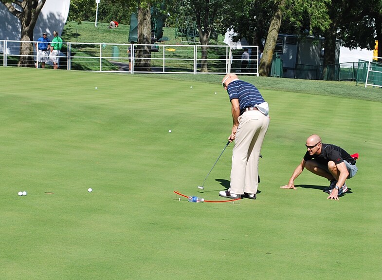 Pro V1x loyalist Ben Crane, meanwhile, had to take his hat off while putting so it wouldn't blow away.