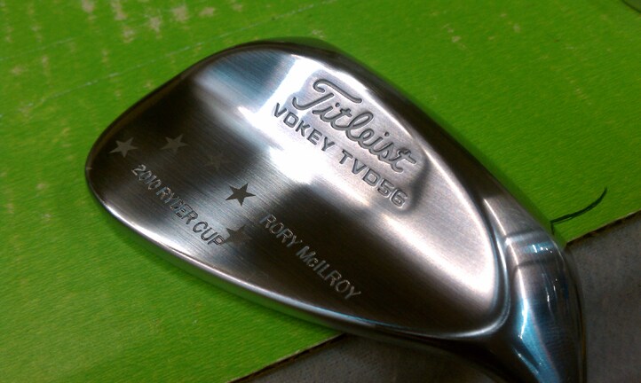 A close-up of Rory McIlroy's wedge, pre-paintfill.
