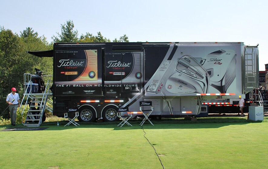 Where is everybody? Working inside the Titleist Tour Van.