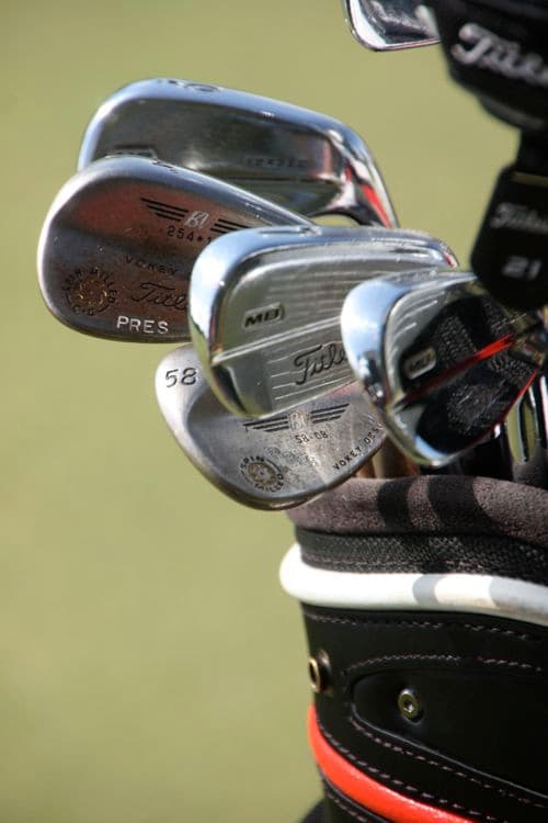 ...MB irons (3-9) and Vokey Design Spin Milled wedges (48, 54, 58) – stamped with "PRES."