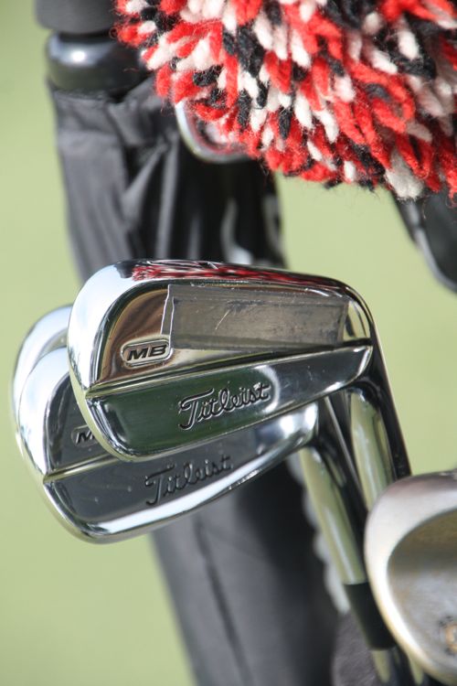 He also carries Titleist MB irons (4-PW) along with a Titleist AP2 3-iron.