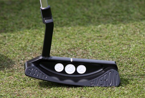 A close up of the Scotty Cameron Tour Laguna 2 with special black finish and welded neck that Nick is currently gaming.