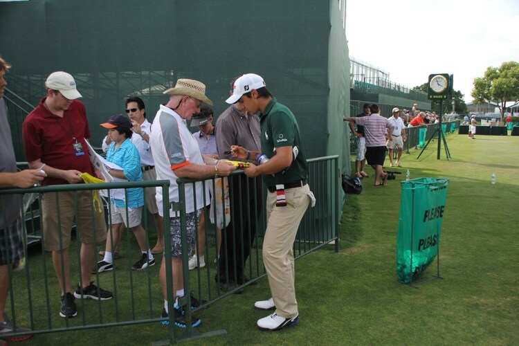 Titleist Brand Ambassador Matteo Manassero makes a quick autograph stop.
