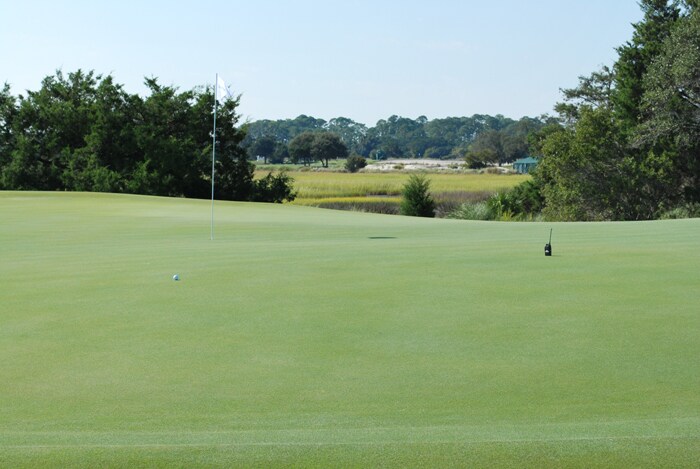 A stray walkie-talkie? Or a potential pin placement? Caddies take note...