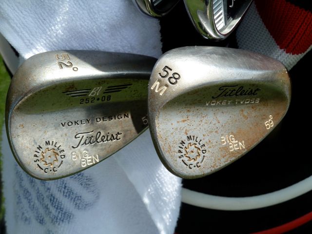 Speaking of wedges, here's a close-up of Ben Curtis' Vokey's. Check out his 58 degree (bent to 59 degrees) TVD M-Grind wedge. Good news, you can personalize your own at Vokey.com.