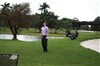 Back on the ground, Titleist Brand Ambassador Tim Clark demonstrates the proper way to use a long putter.