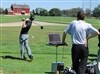 Titleist Tour Rep Fordie Pitts checks Zach's numbers on the TrackMan launch monitor.