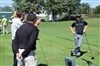Titleist Tour Rep Fordie Pitts checks Zach's numbers on the TrackMan launch monitor.