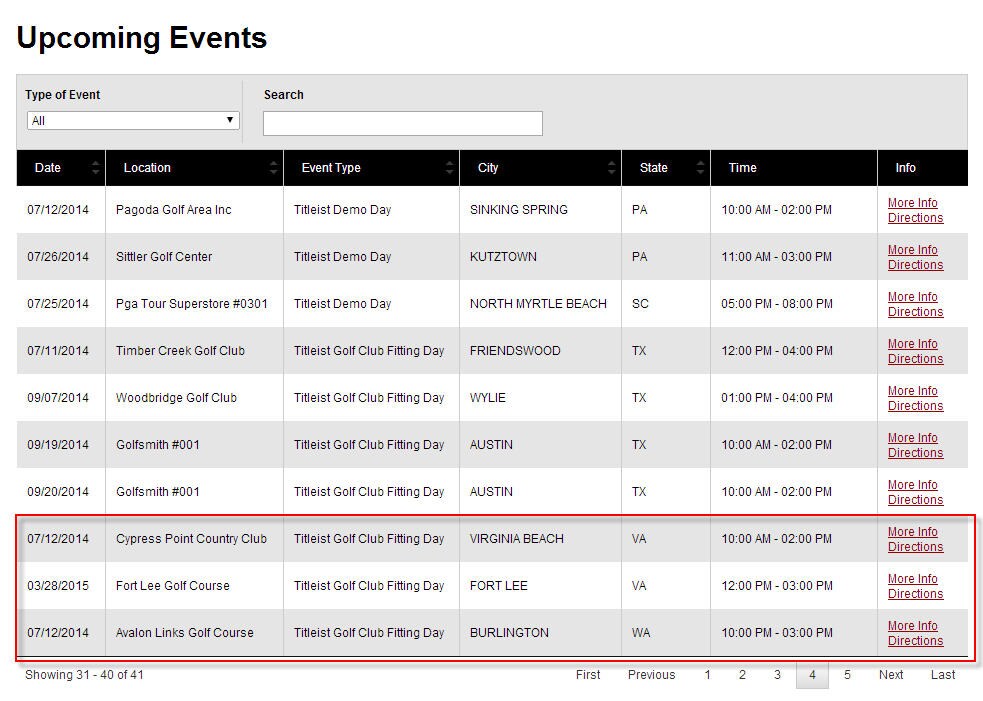 There are a couple upcoming in the PA, NY area, but nothing in DC. Most of the fitting days were conducted in the spring time. Here is the link to the events. It may be difficult to see, but you can filter the state, city and type of event by clicking on the right (in the black next to state, city, etc). http://www.titleist.com/teamtitleist/team-titleist/f/6/p/25875/116096.aspx#116096