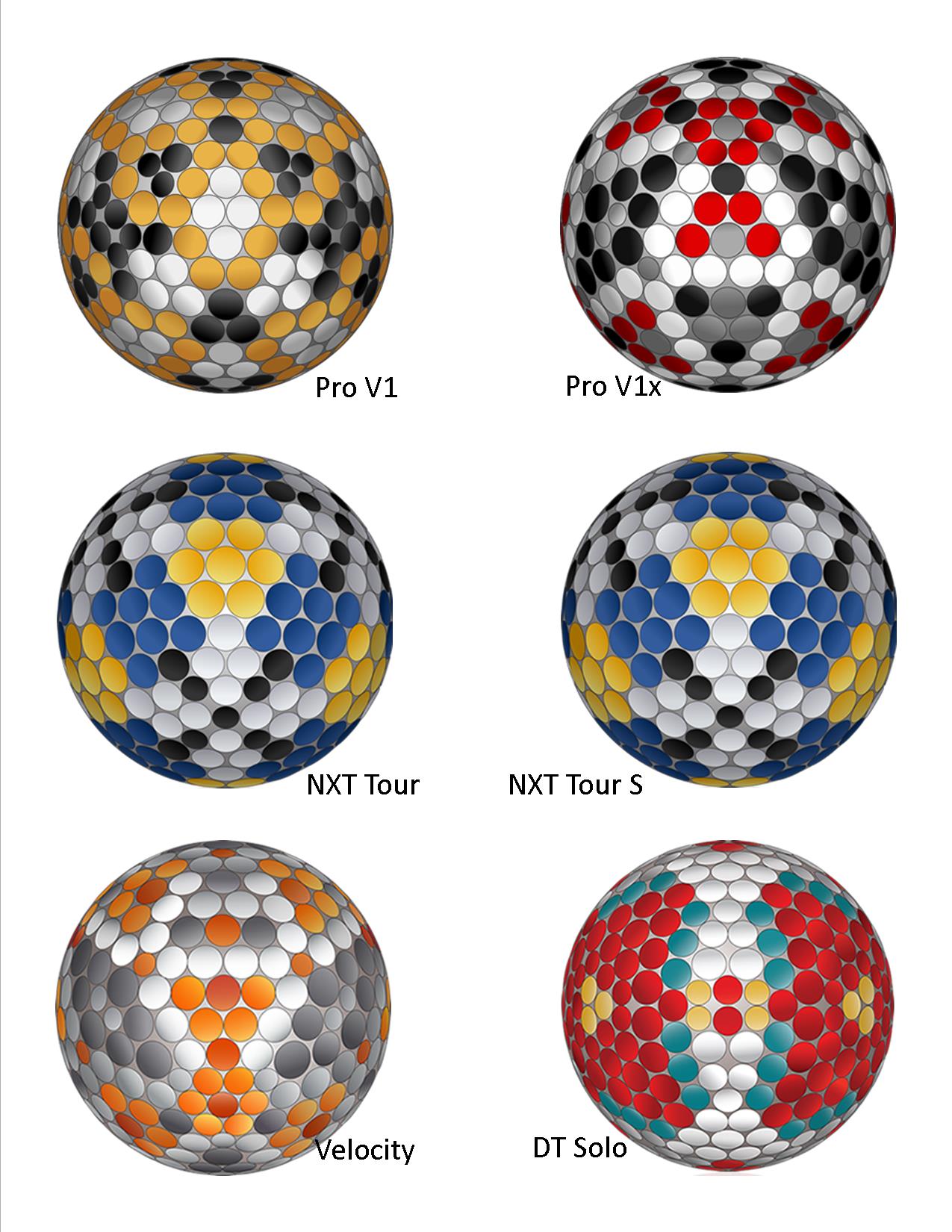 CB, looks like you did your homework. My last test balls was a sleeve of balls with a black square and a sleeve of balls with black circles. My thoughts that both ball were very similar but the balls with the black square flew longer and straighter and the spin performance on the green were about the same. The black square ball out performed any ball I have played and would not hesitate buying this ball if it ever comes to market. Of course we will never know what it was regardless of dimple pattern. When you studied the dimple patterns were the Velocity, DT Solo, NXT, NXT Tour, ProV1 and ProV1x all the same are does each one have their own unique pattern ?