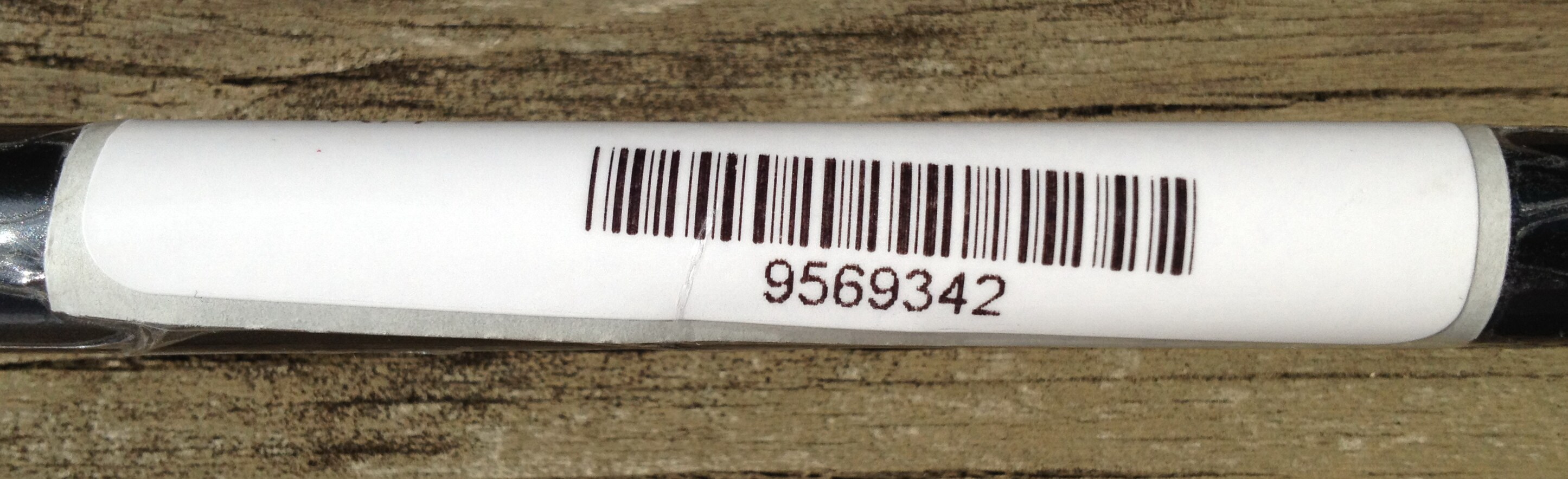 2. The bar code sticker has not been placed directly on the shaft, instead it remains on the original backing paper and has been taped to the shaft.