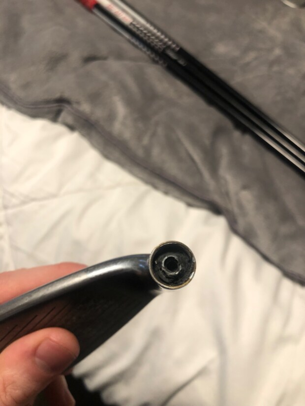 6. When each iron broke, I felt them weaken before the head came off. The clubs had a different feel when struck, and the head felt noticeably wobbly. Only one head came flying off, the others just fell off from a light pull. It almost felt like an aging thing was at play here as the head sort of crumbled away from the shaft. It was not entirely clear if there was a crack. The joint at the hossel felt super weak when they were ready to go.