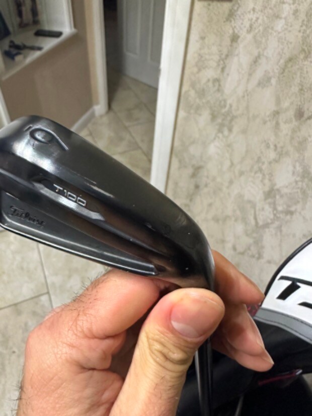 i was super excited to get my new black edition t100 but have found the finish isn’t as good or durable as expected. Played two rounds with them and I use an electric golf trolley. As can be seen the finish is rubbing off the back of the clubs from light chatter. Anyone else notice this? I expect them to wear but not like this after two rounds.