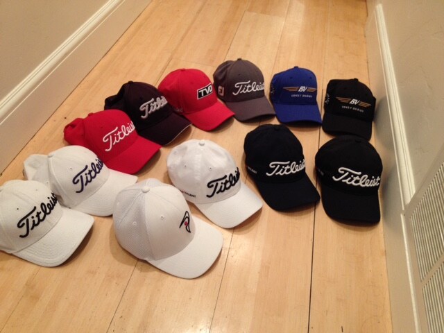 I have 17 Titleist caps. My two favourites are a navy blue and a beige color that have the Knowlton Country Club logo embroidered on the left side of the cap. My son is the assistant club pro there!