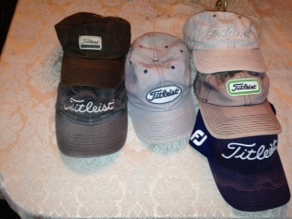 It’s a wet day in North Carolina so I decided organize some of my golf “stuff,” which resulted in me consolidating all of my faded Titleist hats. Six hats total and if memory serves me correct the fading started in less than 2 months after buying them. Four navy blue and two blacks. The interesting thing is the hat in the center was a navy blue hat and the black hat (bottom left) have faded nicely over time and I’m often ask where I bought them…usually when I’m at a Home Depot.