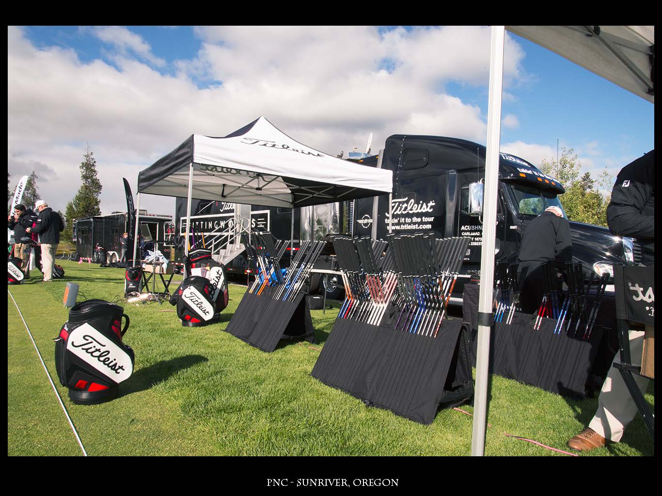 Our Oceanside fitters have flown up and our 40' FittingWorks Tour Van has crossed the Rocky Mountains to work with our Titleist PGA staff pros that have qualified for the 46th PGA PNC at Sunriver, Oregon. It will be held on June 23rd through the 26th at Crosswater Club and the Meadows Golf Course. This tournament is a chance for our PGA club pros to compete against the rest of their peers with the top 20 finishers earning a berth at the PGA Championhip. The Team is setting up on the range and I have