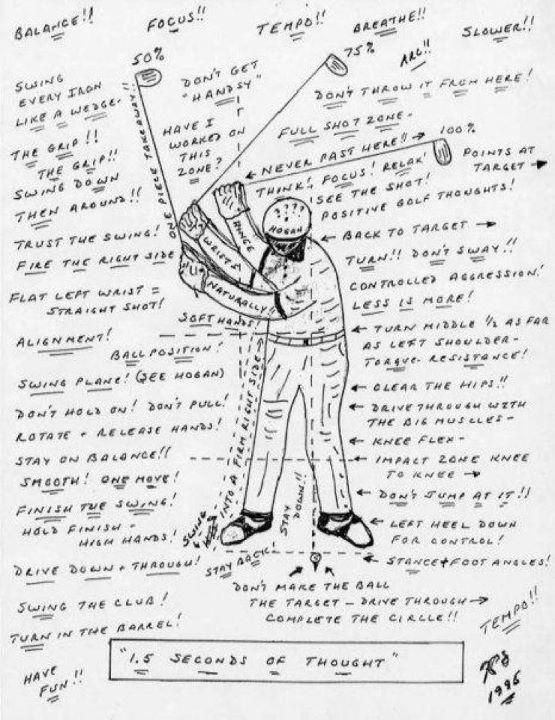 Interesting topic.....I've discovered that I'm much better off when I can limit it to just two swing thoughts as I prepare for the shot.....my current ones are usually "head still" and "be aggressive"....