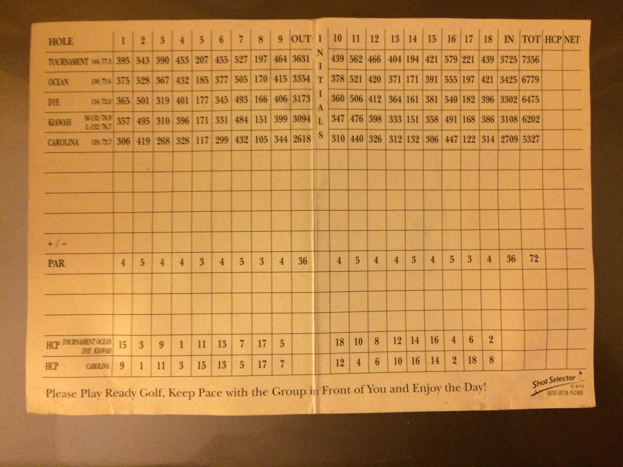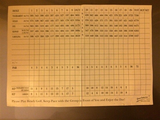 I figure the membership here has played some killer golf courses. Anyone keep their scorecards or grabs blank one as a momento? Please post a picture.