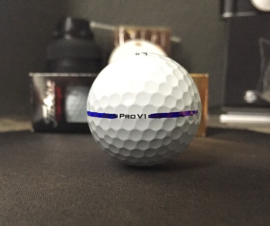 A blue line along the Pro V1X.  Always blue.   Don't ask why.